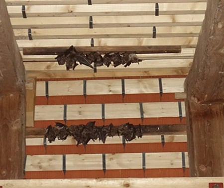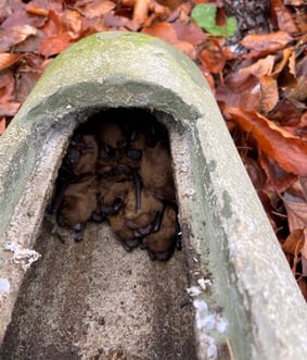 Bartfledermäusen. Die Fledermäuse waren mit ihren Wochenstuben zugange und