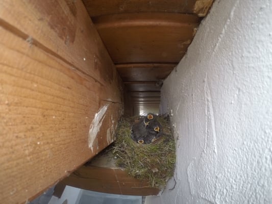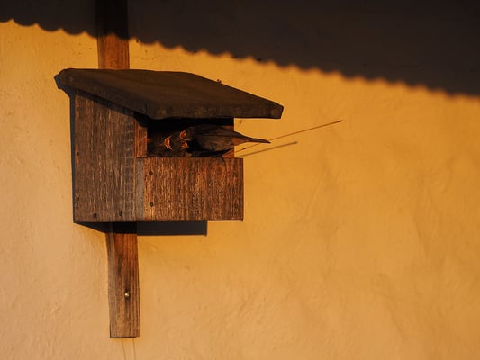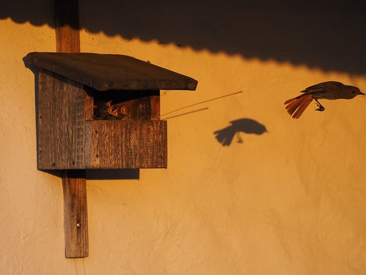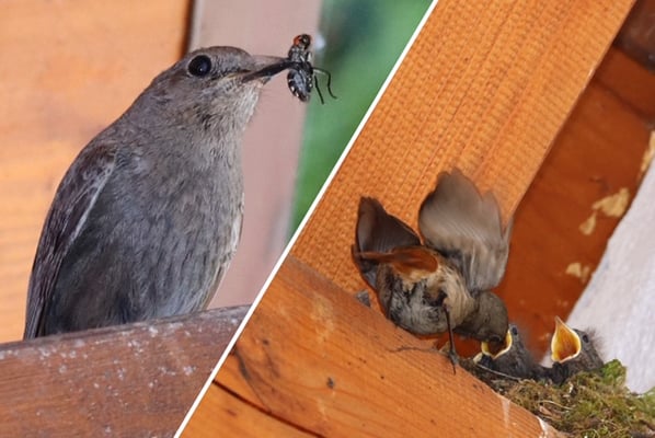 Spatzen bei der Müllverwertung (Foto: USH) Feldsperling nach Nistkastenreinigung im Meisennest (Foto: USH)