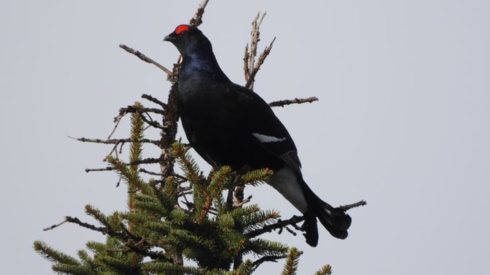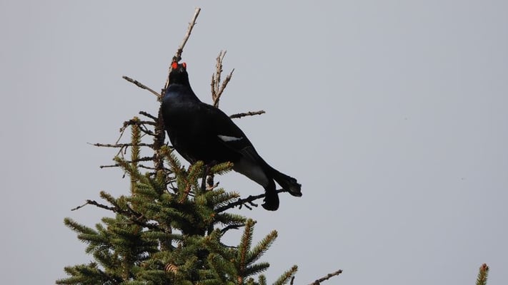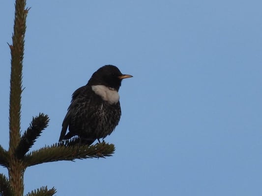 Sonnenaufgang über dem Rossfeld bei Berchtesgaden, am Sonntag, den 24. April, um 06:00 Uhr. Und gleich nebenan ... in der nächsten Tanne, noch ein früher Vogel ... Würmer - aufgepasst!